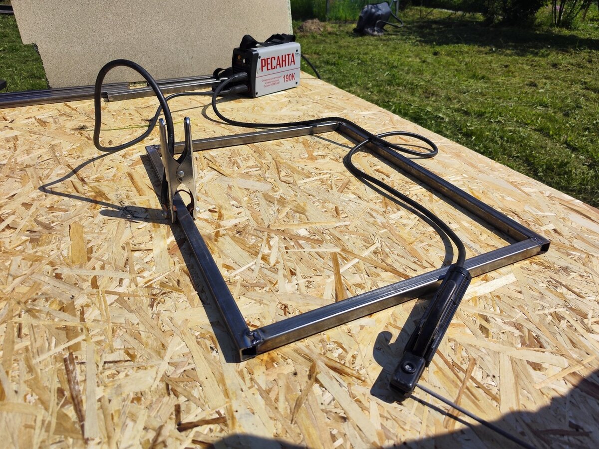 Всем привет! Снова в руках у меня оказался сварочный аппарат, давно ничего не варил. В связи с покупкой посудомоечной машины на дачу, мне следом от жены прилетел заказ сделать для "машины" тумбу: ну что пошел изготавливать. Зимой варил дровник, от него как раз осталось немного материала . Мне как раз понадобилось 4 куска трубы по 1.5 метра с сечением 20*20 мм. Трубу я распилил на заготовки по 4шт - 60,55 и 35см. Далее оставалось только сварить прямоугольный параллелепипед под прямым углом с помощью угольника. Думал с лета уже все забыл, но руки ещё помнят как это делать. После сварки зачистил все неровности и приступил к покраске. Краска тоже из запасов - в баллончике осталась с момента реставрации старой тумбочки. Вы уже наверное поняли, что покупать ничего не пришлось для изготовления этой тумбы, запасов хватило на всё. Покрасил каркас в золотой цвет, смотрится кстати приятно, как говорится дорого-богато. В роли столешницы использовал влагостойкую ДСП панель. Правда зелёного цве