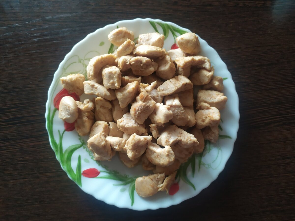 Всем привет! Ну очееень жарко у нас. Этот салат как раз подойдет в жару, когда хочется чего-то легкого и вкусного. Для салата понадобиться: Репчатый лук, огурец, помидор, перец болгарский, куриное филе и специи по вкусу. Заправка для салата соевый соус и растительное масло Для начала нарежим кубиками и обжарим куриное филе Помидор и огурец режим ломтиками Нарезаем лук полукольцами и болгарский перчик тонкой соломкой Все ингридиенты смешиваем и добавляем заправку. Можно посыпать зеленью и кунжутом. Салат получился очень вкусным и легким. Всем приятного аппетита!