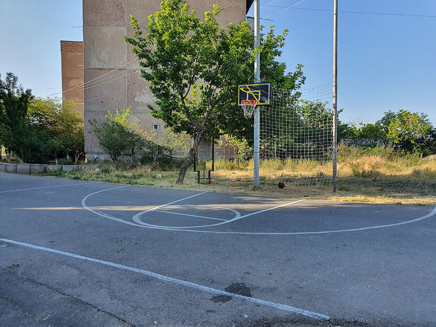 Нанесли специальной краской разметку перед баскетбольным кольцом. Теперь у нас всё как у взрослых: есть трёхочковая дуга, линия штрафного броска, трёхсекундная зона и линия аута. Поддержать проект: