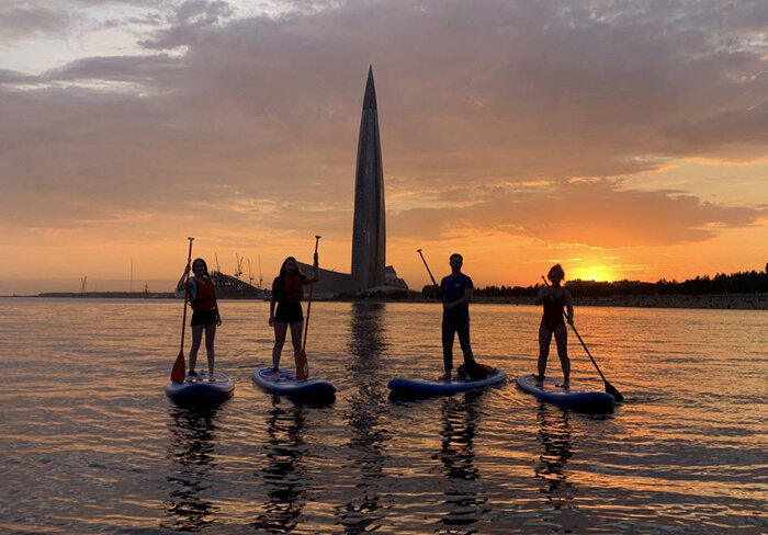 Потрясающий вид на Финский залив, самый северный в мире небоскреб и, конечно, на заход солнца – от такого пейзажа по-настоящему захватывает дух. Посмотреть на закат можно с берега и пляжа или прямо с воды – если организовать прогулку на сапах у Лахта-центра в вечернее время.