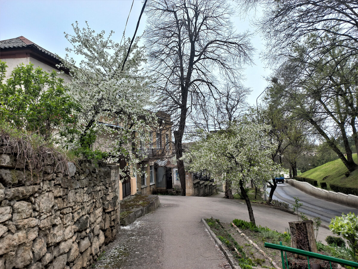Прошлись под цветущими фруктовыми деревьями, позаглядывали во внутренние дворики.