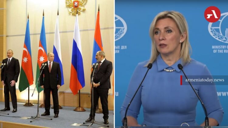 Захарова выразила мнение, что премьер не стал комментировать этот вопрос, так как «роль России зафиксирована документально в соответствующем письменном документе, под которым стоят подписи и Армении и Азербайджана».