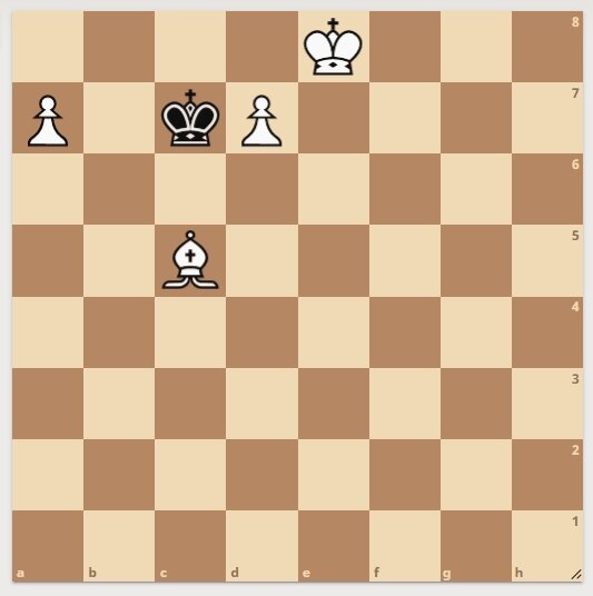 Автор задачи Т. Стендел, 1965 год. У белых две пешки и слон. Однако белые начинают и ставят мат в 2 хода. Подписывайтесь на канал и будут новые интересные задачки. Решение смотрите далее. 1. Белые ставят слона на поле "а8". 1. ............................... черные делают ход королем. 2. Белые ставят ферзя на "d8", мат. Следующая задача тут