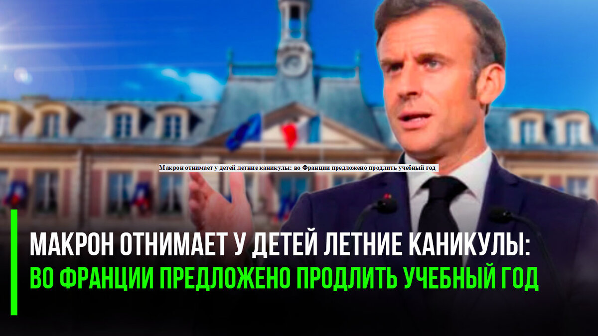 Наш дорогой не-коллега и не-партнёр Макрон, который так любит заниматься всем, чем угодно, только бы не решать реальные проблемы своей страны, нашёл очередную «великую цель», которая у него, вишь, важнее инфляции и падения уровня жизни: он решил добраться до школьных каникул! Завершение учебного года и наступление школьных каникул вызывает разные эмоции у детей и родителей. Одни с нетерпением ждут летних приключений и отдыха, другие осознают, что предстоящие каникулы, возможно, пройдут в школьной аудитории. Вот такие мысли, похоже, посещают и французского президента Эммануэля Макрона. Он считает, что дети слишком долго отдыхают летом и хочет загнать их в классы. Согласно официальному расписанию, летние каникулы начинаются во Франции 8 июля, а учебный год открывается только 4 сентября. Однако, у частных школ есть возможность отправить детей на каникулы на пару недель раньше. В муниципальных школах же обычно все классы опустошаются после выдачи табелей за год, а те, кто остается в школе,