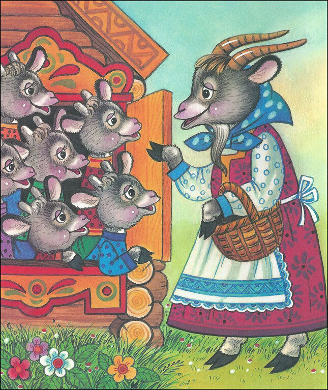 Жила-была коза с козлятами. А папа-козёл их бросил. Уходила коза каждый божий день в лес кушать травку шёлковую, пить водку студёную. Как только уйдёт – козлятки запрут избушку (ключи коза где-то посеяла) и сами никуда не выходят: ждут, когда мамка придёт, пьяная да весёлая, очередного козла домой приведёт. Воротится коза, постучится в дверь и запоет: «Козлятушки, ребятушки! Отопритеся, отворитеся! Ваша мать пришла – вам деньжат принесла; Шуршат денежки, да в кармашечке, Да на новые, на рубашечки, Да на пиво, да на водочку, На салями и селёдочку!» Как-то раз в это время проходил мимо волк. Услыхал он, как коза песни поёт, и обрадовался: «Ха! Даже отмычки не надо – сами, дурачки, откроют!» И на следующий же день пришёл волк пораньше к козьему домику и запел: – Козлятушки, ребятушки! Отопритеся, отворитеся! … (и т. д.) Да только козлята не полные идиоты были, хоть и без отца росли. И не открыли волку. А самый продвинутый из семерых проблеял: «У нашей маменьки голос тоньше. А ты, наверн