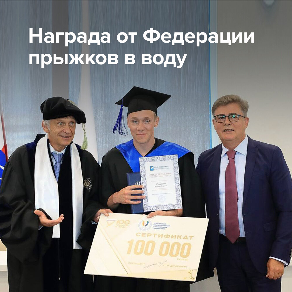 А сколько вы получили за свой диплом? И нет, мы сейчас не про оценки. Наш выпускник, мастер спорта международного класса по прыжкам в воду и тренер Роман Измайлов представил на защите свою работу «Проект повышения зрительского интереса к спортивным мероприятиям по прыжкам в воду». А еще в начале учебного года Российская Федерация прыжков в воду обещала грант на 100 тысяч рублей тому, кто возьмется за эту сложную и объемную тему. Роман защитил свой диплом и на выпускном получил заслуженную награду. Поздравляем! #рмоу #riou #рмоусочи #рмоу_студенты #рмоу_выпускной #спорт #менеджмент #образование #олимпийскийуниверситет #сочи