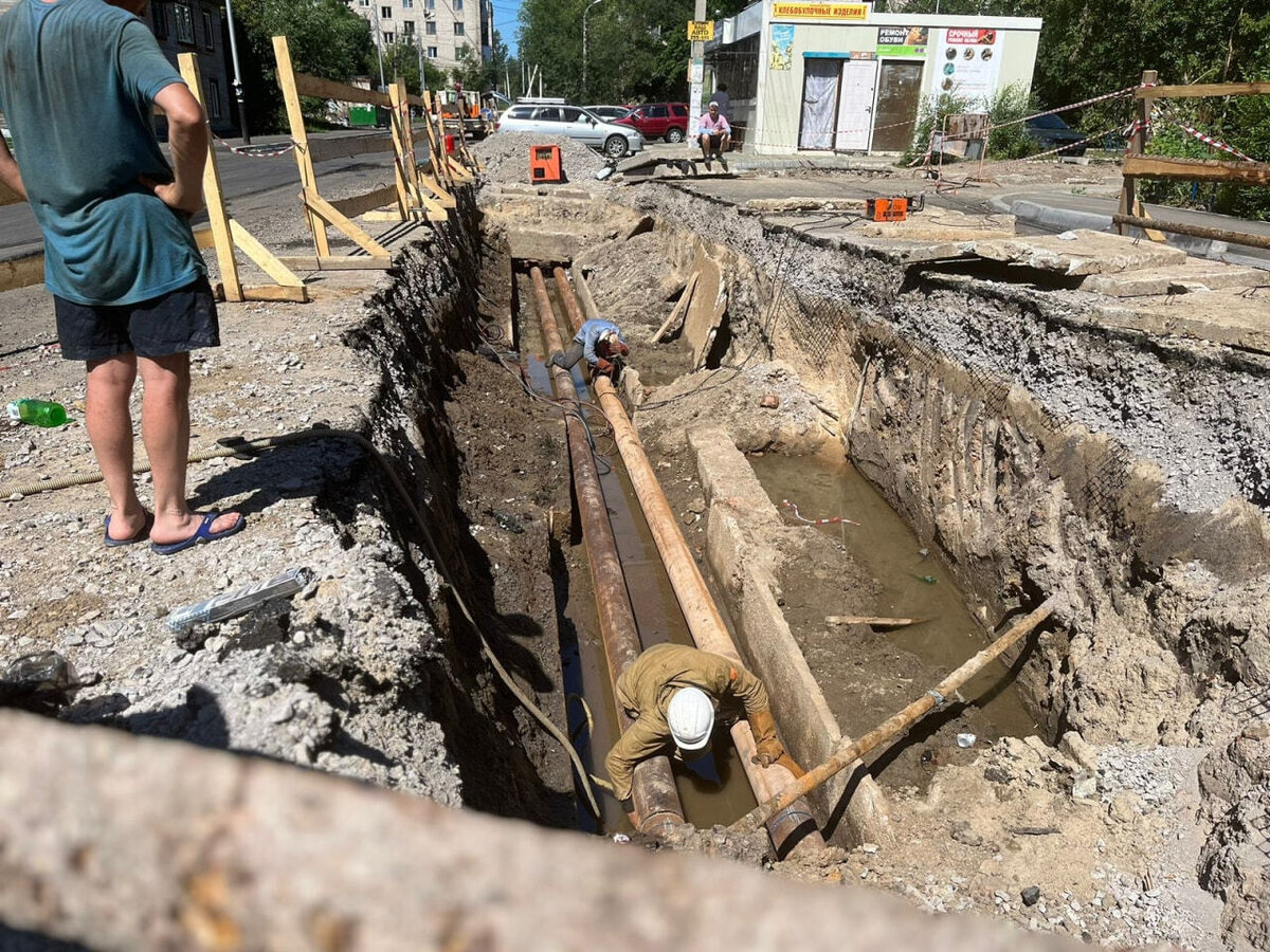 Жители домов на улице Индустриальной недолго радовались проведению долгожданного дорожного ремонта. На теплотрассе под только что отремонтированной дорогой образовался порыв, который никак не могут устранить. Горячее водоснабжение у людей отключено с полудня 8 июня. - Порыв образовался сразу после начала ремонта дороги, было видно, что из коллекторов шел пар. Но, несмотря на это дорогу, продолжали делать, и когда уже был уложен асфальт, буквально через несколько дней его вскрыли, вырыли котлован. Нам говорили, что порыв устраняют, но работники появились только к концу июня. Они завели генератор и сейчас второй день сливают воду из котлована. Горячей воды до сих пор нет, 21-й день пошел. Обзванивали ЖЭУ, управляющую компанию, «Тепловые сети», но когда возобновится нормальное водоснабжение, нам так и не сказали, все ссылаются друг на друга, - поделилась Оксана, хабаровчанка. С 8 июня под отключения из-за повреждений на теплотрассе попали жители домов на улицах Индустриальной, 1, 1а, 1б,