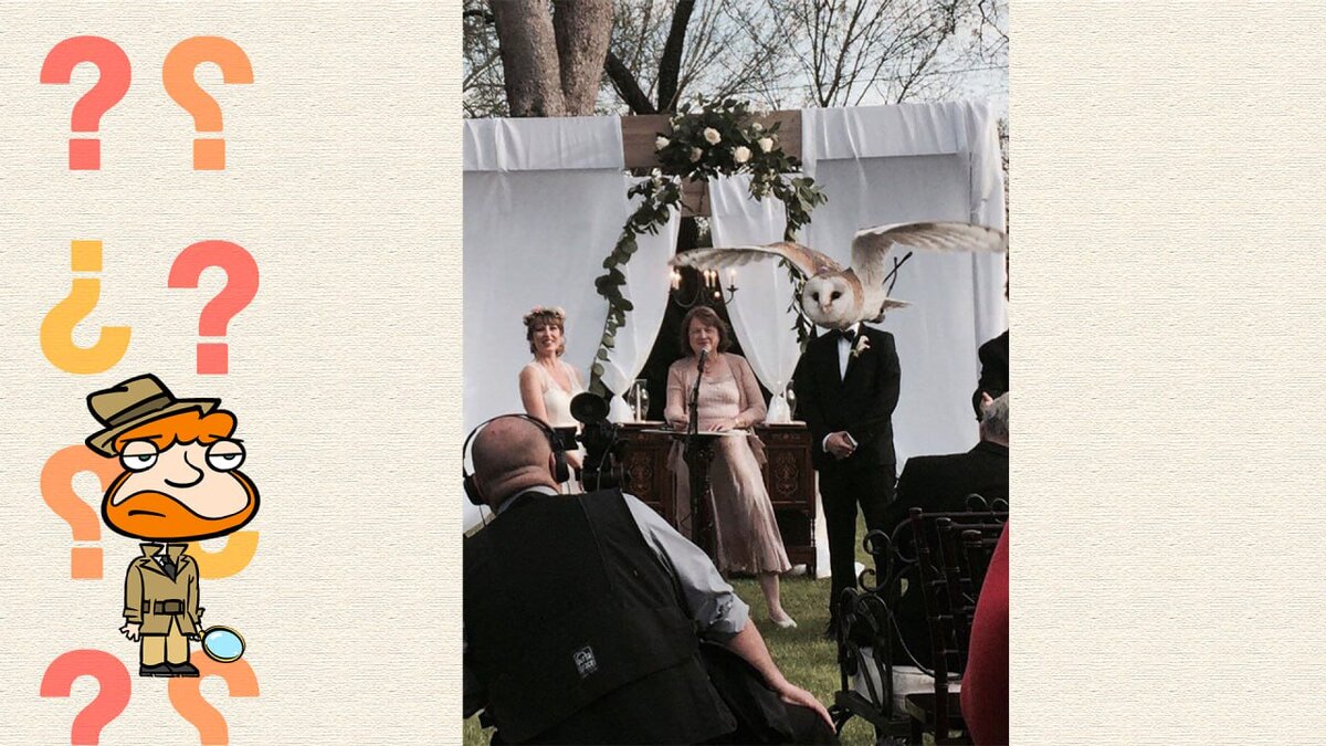 Привет, дорогой друг! В эфире новый выпуск рубрики «Показалось». Совсем уже сбился со счету какой именно. В любом случае тебя внизу уже ждут 8 фотографий, которые обманывают мозг. Вперед к осмотру! Никогда не угадаешь сюрприз жениха. Это и загадка для известной телеперадачи, и для обычной свадьбы. Вот на фото пример: муж решил на мгновение стать совой. Может, он так свой режим хотел обозначить. Берегите системные блоки. Им бывает очень больно, если не проводить уборку. Они устали от больших разъемов. Им нужно внимание и понимание, иначе системные блоки начнут подавать пугающие знаки. Урбанистика умеет гримасничать. Вот возьмем арку в здании, на веревки положим белье и возьмем правильный ракурс. Возможно, так выражается недовольство работой муниципалитетов. Вдруг и правда: знак. Стая птиц способна создать птиц. Сейчас умное будет. В природе существует мурмурация. Это когда стая движется синхронно и создает причудливые фигуры. На фото получилась целая птица. Луну тоже надо поймать. Предс