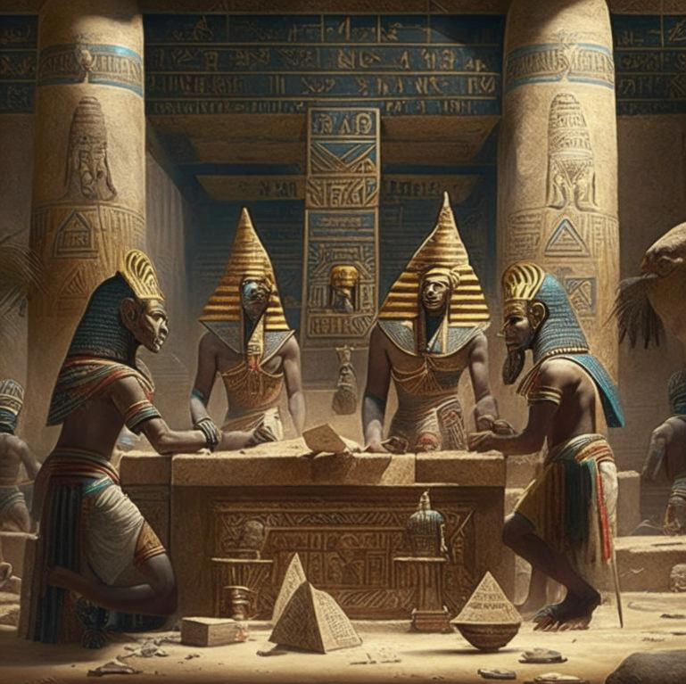 Судебное разбирательство в Древнем Египте. Жрецы и судьи. Нейросеть Кандинский 2.1.