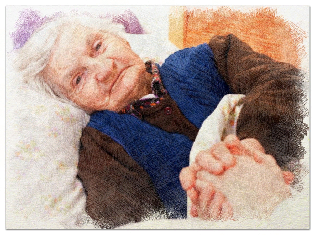 Женщина лежит на кровати. Она заволновалась и попыталась поднять голову, тут же уронила её на подушку, тогда протянула сыну навстречу руку.