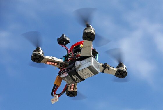 На видео показано, как дрон сначала кружит над целью, а потом быстро падает буквально на голову украинским военным.