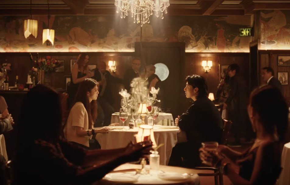 Песня Чонгука ещё не вышла, а вот событий вокруг неё уже множество. Давайте попробуем собрать всё вместе. О том, что Чонгук улетел в Нью-Йорк и как это прошло, я писала вчера вот тут. Так как перелет долгий, тизер клипа в корейские нули мы получили раньше, чем сообщение о прибытии макнэ на место, так что с него и начнём. Очень коротко, впрочем, так и должно быть, но наполнено деталями. Слухи об участии актрисы Хан Со Хи оказались не слухами, так что имеем мы явно пару в отношениях и в отношениях этих явно кризис. На фоне привычного ресторанного вечера, где вокруг множество персонажей, за столиком наших героев происходит какая-то драма, где девушка эмоционально обвиняет, а парень подавлен ситуацией. На столике роза, кстати, в кадр их попадёт две - красная и жёлтая, что, судя по всему, символизирует любовь и разлуку. Над столиком люстра, которая в момент пика конфликта падает, но реагируют на это все, кроме героев. И на фоне всего этого эффектного краха играет коротенькая строчка будуще