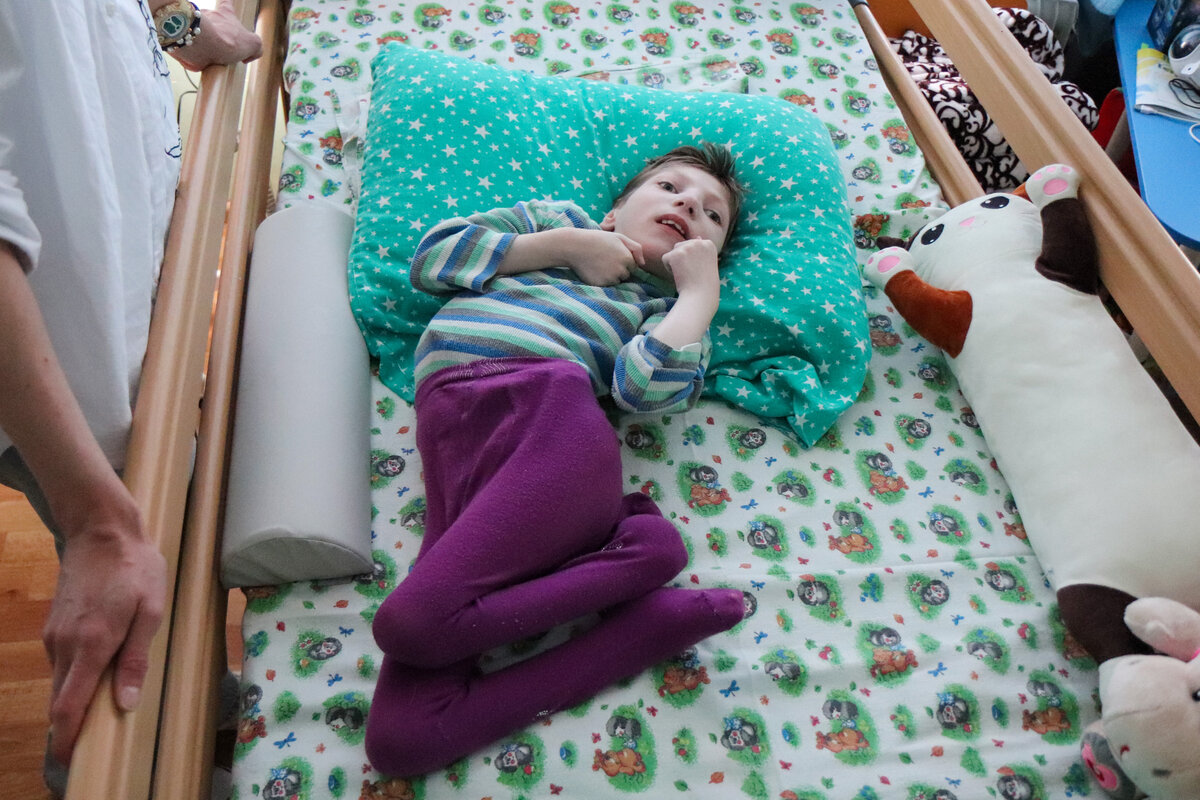 UPD: Благодарим вас! Сбор закрыт! В Арзамасском детском доме-интернате живет Оля. Ее тело изогнуто как спиралька: ножки развернуты в одну сторону, туловище – в другую, ручки все время в напряжении. Обычный человек легко может лечь, вытянуться, встать, сесть, закинуть ногу на ногу. Дети, у которых сильно поражена центральная нервная система, не могут управлять своим телом, им нужна помощь. Если ее нет — появляется большое количество проблем. Это случилось и с Олей. Ее поза — это не последствие основного диагноза. Это последствие неправильного ухода. Если ребенок долгое время лежит ассиметрично, то такое положение закрепляется, появляются деформации и контрактуры. Наши суставы не задуманы природой, чтобы лежать в таком кривом положении. У Оли вывих тазобедренного сустава. Он и контрактуры приносят очень много боли. Раньше, когда Оля видела постороннего человека, сразу начинала кричать. Потому что боялась прикосновений: даже они причиняют большую боль. В январе 2023 года в Арзамасском ДД