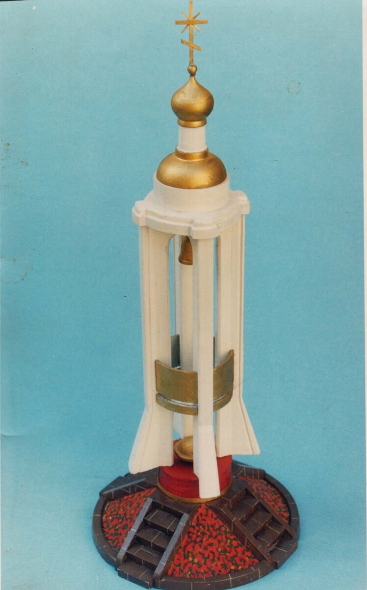 Автор: Владимир Кузнецов После продолжительных моих разговорам с доктором физ-мат наук, заслуженным профессором РФ при ТПУ, автором многих работ и разработок Кулешовым Валерием Константиновичем о том, что хорошо было бы установить во дворе десятого корпуса ФТФ ТПУ стелу или часовню. Я решил собрать все свои ресурсы и воплотить этот замысел. Но реальность оказалась гораздо сложней чем её описывал Кулешов. На первом этапе. Решил сочинить нечто среднее между стелой и часовней, благо фото материалов в инете уже в 1996 г было более чем достаточно. И они (инет материалы) для меня стали аналогами и прототипами. На втором этапе. В своей голове объединил христианство и технику. Это было не сложно. Появился эскизный проект - набросков на листочках в клеточку (более 50 штук). С этими листочками я пришёл к Петру Луневу, старому приятелю, и показал ему эти листочки, рассказывая эту историю. Лунев попросил листочки и денег на материалы взял тайм аут и через десять дней появился этот макет, котор