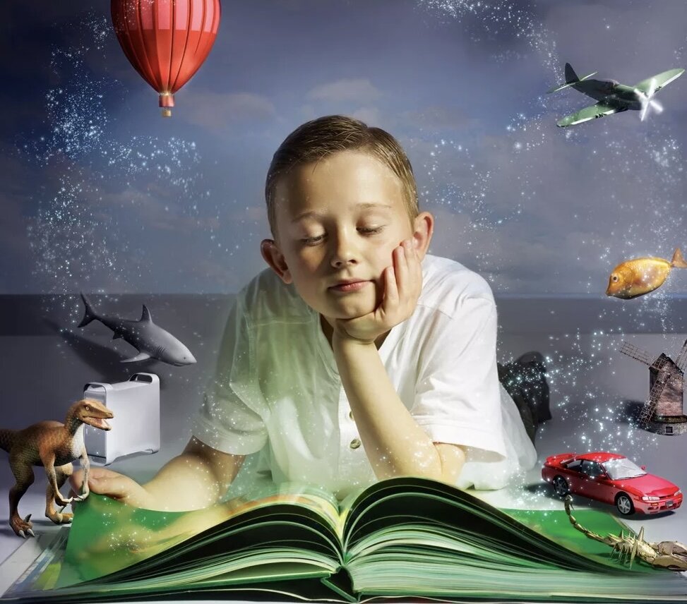 Наличие огромного воображения у ребёнка, приносит бесконечную пользу в его развитии. Кто-то скажет, что знания важнее креативности, не соглашусь. Соблюдая некий баланс, между этими двумя понятиями, в будущем можно добиться неплохих результатов! Существует множество различных методик, пособий по развитию воображения, которые можно найти в свободном доступе на просторах интернета, в книжных или специализированных магазинах. Но очень многое, можно сделать и самим дома, на улице и т. д. Например: можно придумывать рассказы или сказки с ребёнком, где главными персонажами являются сразу несколько героев (русалочка, Золушка и кукла Барби или рыцарь в доспехах, ниндзя и Бэтмен.) Далее... самое распространенное, разглядывая облака с ребёнком, спросите у него: - «На что они похожи?»Если ребёнку трудно сразу, начните первыми и так постепенно, перейдёте к диалогу. Игра «Дорисуй тень», тоже очень распространённая. Особенно интересно играть в неё на улице, где дорисовать предмет или персонаж нужно