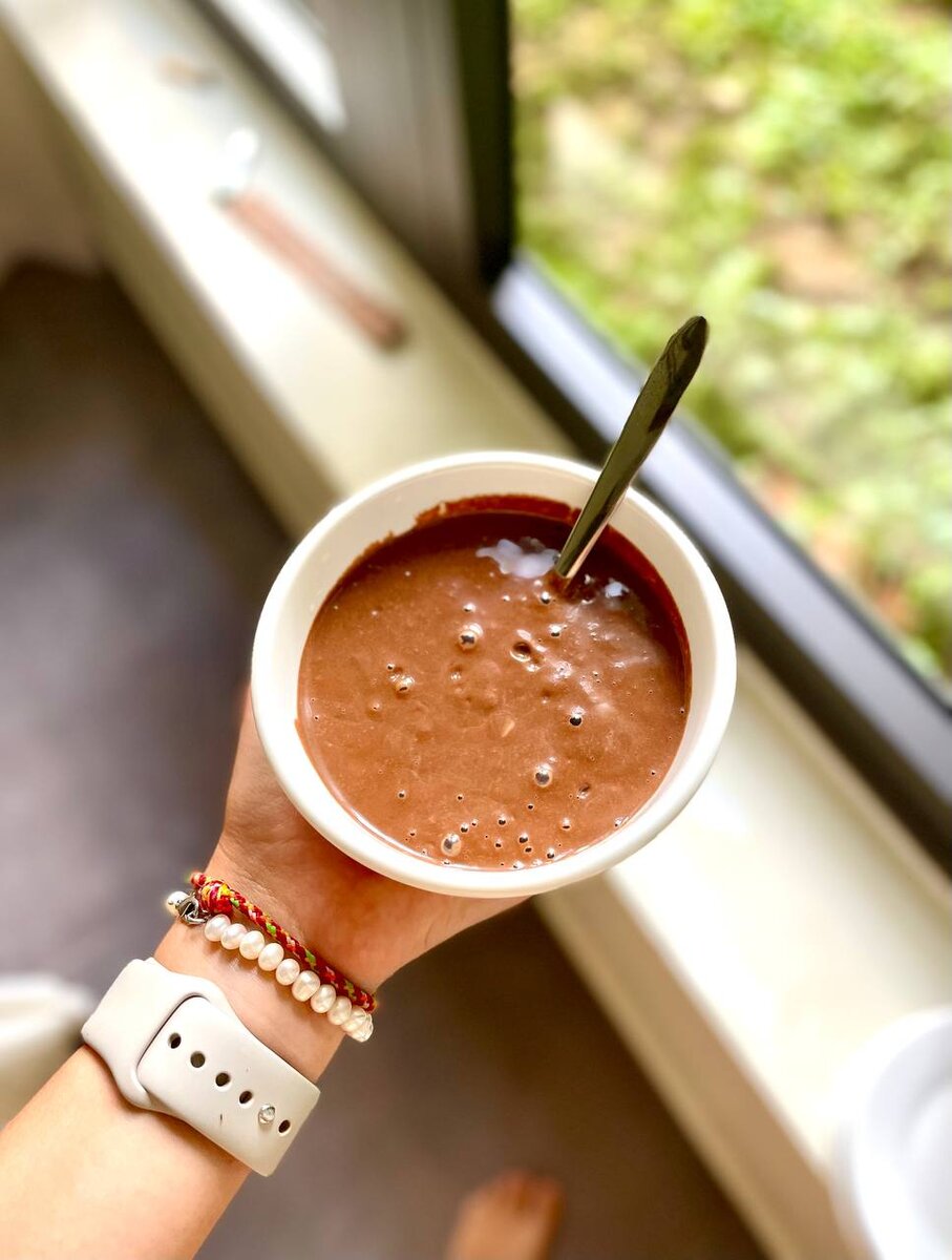 Семена чиа - 3 ст.л. Какао - 3 ч.л. Мед - 3 ч.л Вода - 100-150 мл Для начала нужно измельчить семена чиа: Первый способ: смешать семена чиа в блендере вместе с водой. Консистенция должна быть густая, если получается очень жидкой, добавьте еще семян. Второй способ: измельчить семена чиа в кофемолке и далее хорошо размешать с водой. К водной консистенции из семян чиа добавить какао и мед и снова взбить в блендере. Готово. У вас должна получиться густая кремообразная паста. Вкус зависит от какао, сладость регулируйте медом.