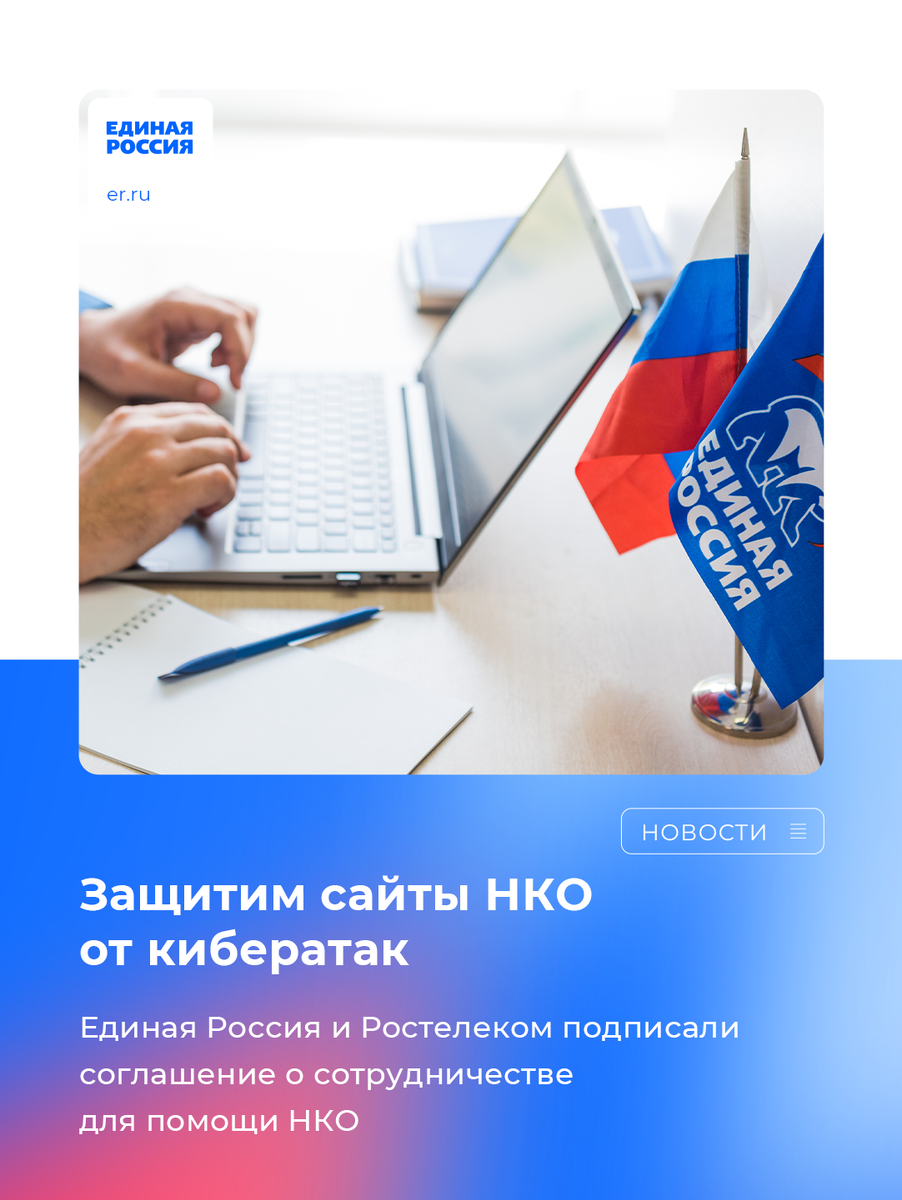 🤝 Сайты НКО получат дополнительную защиту. Единая Россия и Ростелеком подписали соглашение о сотрудничестве. Согласно нему в том числе будет создан онлайн-курс для НКО по информационной безопасности.