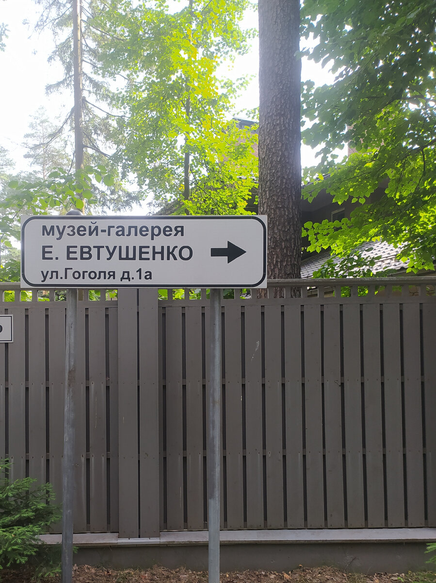 11 июля 2023 года Здравствуйте, друзья! Вчера мы остановились с вами в Подмосковном Переделкино вот у этого указателя. Кто не читал статьи о Переделкино, может поинтересоваться по ссылке ниже. Хотя день уже клонился к вечеру, решила всё-таки зайти и не пожалела. Оказывается это не дом-музей в обычном смысле, а именно галерея, задуманная и построенная самим Евгением Александровичем, то есть по его проекту в 2010 году. Посетить галерею обойдется пенсионеру в 130 рублей. Проход к самому зданию выглядит немного мрачно и представляет собой узкую тропинку между двумя высокими заборами. Здание галереи построено из дерева, "без единого кирпича", и запах древесины за прошедшие годы не выветрился. Дом сфотографировать мне оказалось не под силу, слишком близко забор. Это длинное здание одноэтажное и с мансардой. В галерее собраны фотографии, сделанные самим Евгением Александровичем в его поездках по стране, картины известных авторов и не очень, подаренные и приобретенные, скульптура. Экспонаты р
