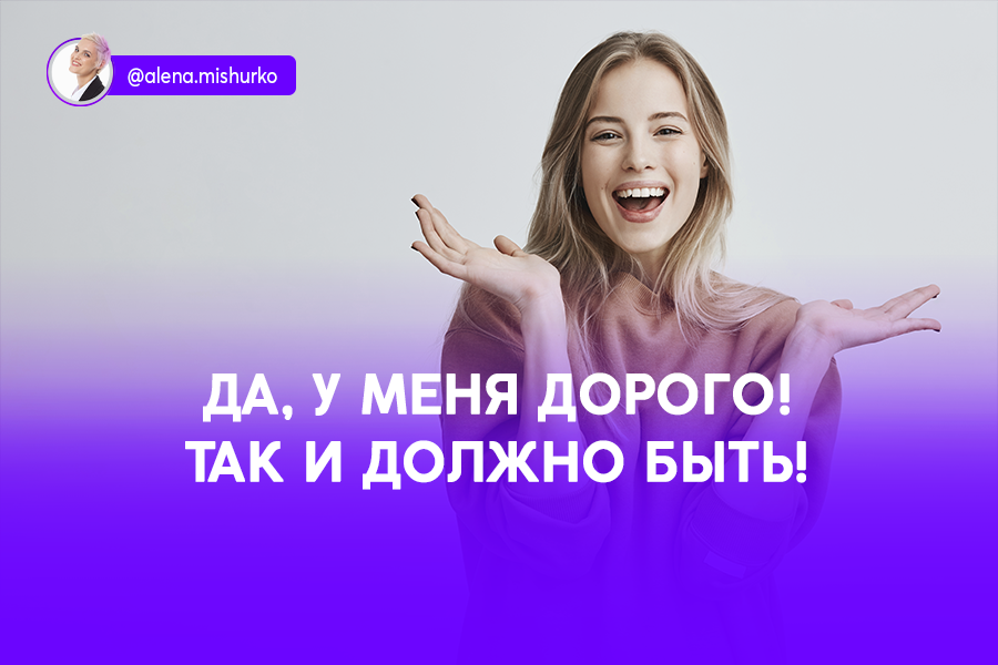 “У вас дорого” - очень неприятное возражение. Даже если вы точно знаете, что создаете свой продукт из лучших материалов и, что называется, на совесть, все равно такой комментарий может вогнать в уныние или вызвать неуверенность. Контент - основа основ и палочка выручалочка. С его помощью мы отработаем возражение “Дорого!” раньше, чем оно успеет возникнуть! Вот список тем для постов, которые помогут обосновать свою ценность. При этом вам не придется оправдываться за свою цену и сравнивать свой продукт с коллегами. Товарный проект: Экспертный блог: Если снова кто-то отметит, что у вас дорого, значит он не читает ваш блог. Бывает! Но знаете в чем еще один волшебный эффект этих постов? Говоря о достоинствах своего продукта, показывая клиентам его ценность вы… продадите его сами себе! Вы влюбитесь в свой продукт с новой силой и теперь вам будет не страшно услышать “Дорого!”. Потому что - да, дорого. Но так и должно быть! Еще один мощный инструмент для обоснования цены - рассказ о себе. Да-д