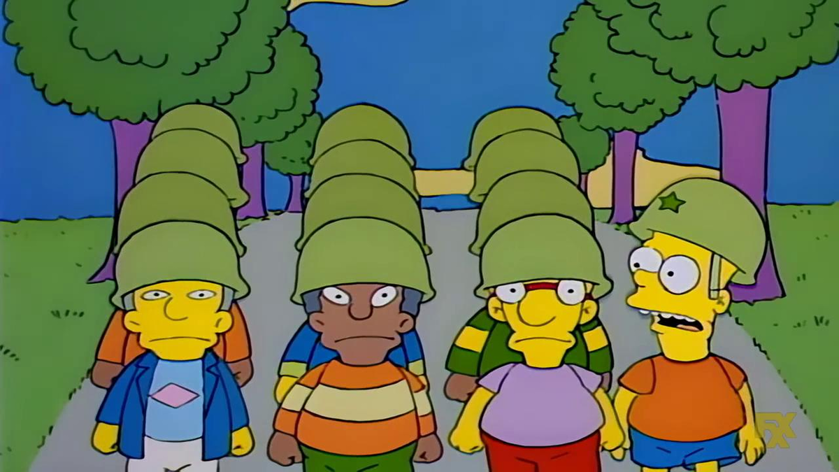 Герман советует объявить войну Нельсону и объясняет Барту будущую стратегию. Парнишка собирает других школьников, которым тоже досталось от буллинга, и вербует их в качестве солдат.