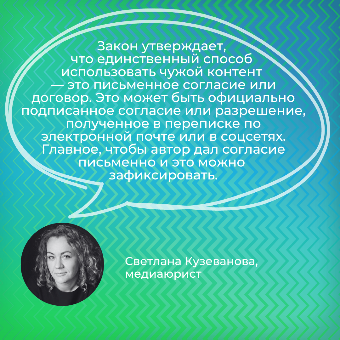 Ирина Васильевна провела интерактивный урок и сняла видео, которым поделилась в своем аккаунте в социальных сетях. Другой педагог из другой школы, посмотрев ролик, взяла его, чтобы использовать в своей работе от своего имени. Разрешение у Ирины Васильевны никто не спросил.