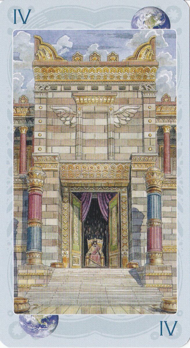Аркан Император Место – Дворец Соломона (Иерусалимский дворец) Соломон — персонаж множества легенд, в которых выступает как мудрейший из людей и справедливый судья, нередко ему приписываются волшебные качества: понимание языка зверей, власть над джиннами. Традиционно считается автором ветхозаветных книг Екклесиаста, Песни песней Соломона, Притчей Соломоновых, а также некоторых псалмов. Его именем названа неканоническая или второканоническся книга Премудрости Соломона, входящая в состав Ветхого Завета в православии и католицизме. Соломон имел 700 жён и 300 наложниц. Основой благосостояния Соломона был проходивший по его владениям торговый путь из Египта в Дамаск. Он не был воинственным правителем, хотя объединённые под его властью государства Израиль и Иудея занимали значительную территорию. Соломон поддерживал дружественные отношения с финикийским царём Хирамом. Согласно библейскому повествованию, узнав о мудрости и славе Соломона, к Соломону прибыла правительница Сабейского