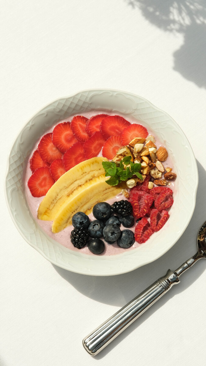 Красивое блюдо, требующее минимум навыков и сил, но при этом дающее максимум пользы и вкуса — это не что-то из области фантастики, а смузи боул с лесными ягодами и карамелизированными орехами из меню Joli Grand Bistrot. Его рецепт мы узнали от шеф-повара Карена Ваганяна, а теперь делимся им с вами. ИНГРЕДИЕНТЫ: Для украшения: СПОСОБ ПРИГОТОВЛЕНИЯ: Сначала берём банан, ягоды и йогурт, добавляем 10 грамм сахара и перебиваем блендером до однородной консистенции. Затем убираем в морозилку и начинаем готовить орехи. В сотейнике на среднем огне нагреваем оставшийся сахар до тех пор, пока он не растворится. Добавляем соль и предварительно измельчённые орехи, перемешиваем лопаткой, выкладываем на пергамент и даём остыть. Далее достаём из морозилки наш замороженный смузи, снова пробиваем его блендером и выкладываем в тарелку. Сверху украшаем слайсами клубники и банана, целыми ягодами, орехами в карамели и мятой. Все, ваш смузи боул готов. Можете поделиться им в своих социальных сетях, но будьте
