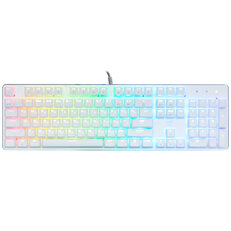 В этой клавиатуре кейкапы изготовлены из пластика PBT, и это очень хорошо (PBT долговечнее чем ABS кейкапы). Клавиши слегка шершавые и благодаря этому, печатать удобнее (на abs это покрытие очень быстро стирается). Форма кнопок выполнена с углублением к центру , таким образом печать за этой клавиатурой становится удобнее и меньше шанса случайного нажатия по нежеланной букве. На кейкапах прорисованы буквы и цифры. Шрифт соответствует названию "Gaming". Все буквы и цифры у кейкапах прозрачные для подсветки