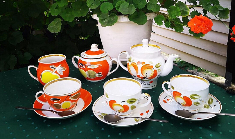 Приветствую Вас, дорогие читатели канала Aysylu JewelryArt! 🌟 П.С. Все фото взяты из источников интернета, если Вас заинтересует какое то фото, напишите в комментариях и я дам на него ссылку😉 Продолжаем тему яблок🍏🍎Сегодня рассмотрим сочный яркий сервиз Полонского фарфорового завода, 1960х годов. Найти можно этот сервиз по названию «Золотое, наливное или же еще райское яблоко»😉 Сочетание оттенков очень радует: ярко оранжевое крытье, желто-золотые яблочки, сверкание позолоты и всё это на белом фарфоре — идеально просто😍✨ В этой статье хочу Вам показать некоторые виды сервиза «Яблоко», на каких формах они выпускались. На самом первом фото как раз заметно по чашечкам, рисунок и форма — разная😉 Вот, к сожалению, название форм и авторов найти мне не удалось. Если только, Вы, дорогие читатели нам не подскажите😉 То тогда дополню свою статью. А вот автора росписи нашла: Моисеева Антонина Алексеевна. Итак, в комментариях нам Ирина Как-то так, подсказала название форм с авторами❤️Как вс