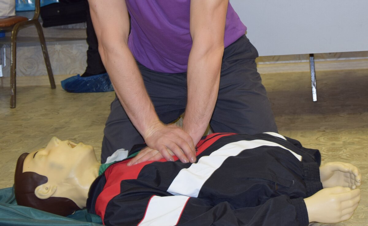Поступление достаточного объема воздуха в легкие пострадавшего осуществляется наиболее эффективным методом - «изо рта в рот». Искусственное дыхание проводится, когда человек не дышит. Или, когда дыхание редкое, судорожное, как бы со всхлипыванием. Прежде чем начать искусственное дыхание важно обеспечить проходимость верхних дыхательных путей, которые в положении на спине при бессознательном состоянии всегда закрыты языком. В полости рта может находиться инородное содержимое (рвотные массы, песок и т.п.), которое необходимо удалить пальцем, обернутым платком (тканью, бинтом). Человек, оказывающий помощь, располагается сбоку от головы пострадавшего – одну руку подсовывает под шею, а ладонью другой руки надавливает на лоб, максимально запрокидывая голову. Затем, оказывающий помощь наклоняется к лицу пострадавшего, делает глубокий вдох открытым ртом, полностью и плотно охватывает губами открытый рот жертвы и делает энергичный выдох, одновременно закрывая нос пострадавшего щекой или пальцам