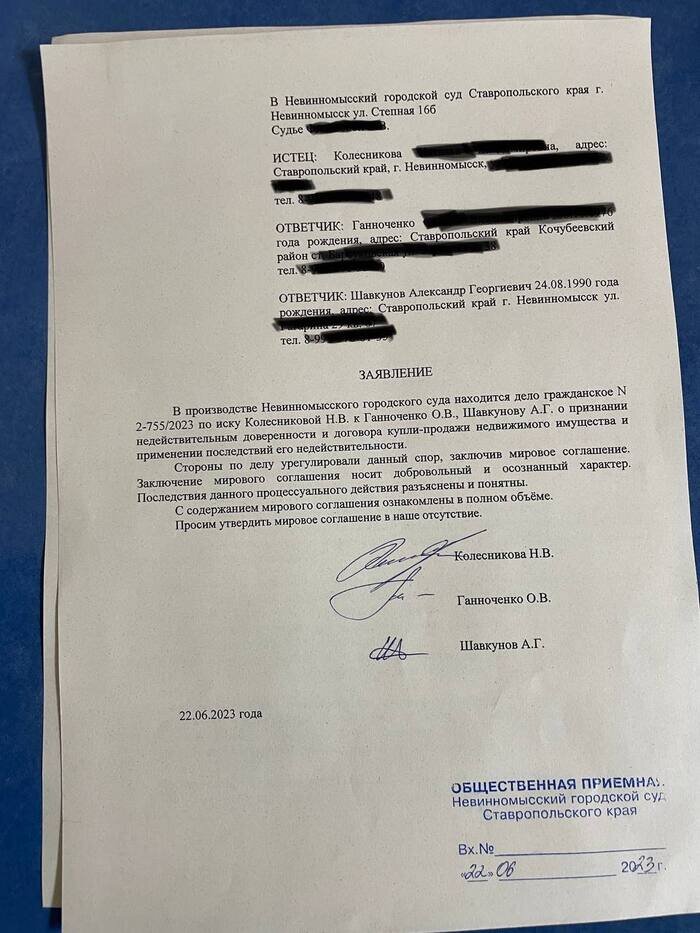 Так, уж не знаю увидят ли этот пост люди поддержавшие меня морально. Однако, в любом случае, хочу сообщить, судебные тяжбы кончились подписанием мировой. Вот собственно фото, надеюсь личные данные затёр достаточно (свои тёр небрежно, ибо ничего против не имею): Квартира признана моей по праву, правда для этого пришлось просить адвоката в красках расписать, что ждёт бывшего хозяина и его сестру (податчицу) в случае признания сделки не действительной. Если в кратце, они лишились бы и этой квартиры и ещё должны бы мне остались. В итоге, сейчас я её продаю, так как за эти полгода жизни в бетонной коробке возненавидел и больше не могу физически здесь находиться. Решение эмоциональное, но так будет лучше. Возьму однушку в новостройке, а пока буду снимать. Прошлый аккаунт пришлось удалить ради создания этого поста, причина в модераторах, повесивших на него бан до конца этого месяца, ещё в прошлом месяце. На данный момент в планах полностью уйти в писательскую работу и забыть эти пол года, как