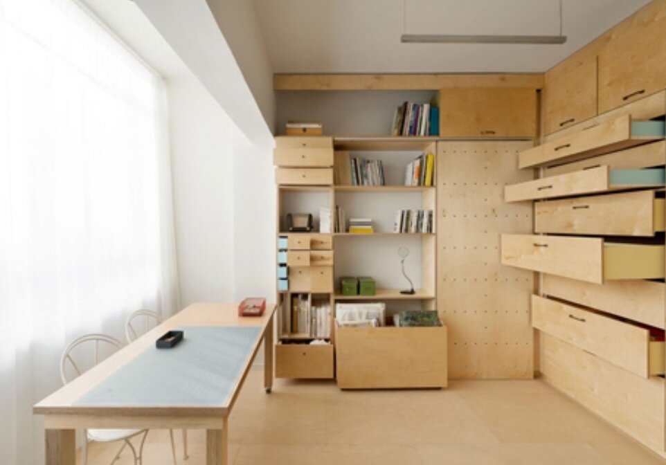Функциональное использование пространства маленькой студии. Хотите больше лайфхаков и идей для ремонта? Ставьте лайки и подписывайтесь, чтобы ничего не пропустить! 🙏 ➡️ Мы в телеграм: t.me/inmyroom Израильский архитектор Ранаан Стерн спроектировал мастерскую для художника, подстроив каждый сантиметр пространства под интересы, работу и привычки заказчика. Мастерская, площадью 15 м² находится в Тель-Авиве, в квартире 50-х годов постройки. Архитектор и его команда создали студию с двумя письменными столами, мобильными настенными панелями, модульными отделениями для хранения, 36-ю выдвижными ящиками и даже раскладной кроватью. Получившуюся постройку расположили вдоль стен от пола до потолка. Необычное помещение включает в себя рабочую, жилую и выставочную зону. Расширить пространство не представлялось возможным из-за особенностей постройки. Команда 4 недели скрупулезно проектировала каждый ящик модуля, разделяя их по 4-м отдельным категориям. Затем эти категории были дополнительно распре