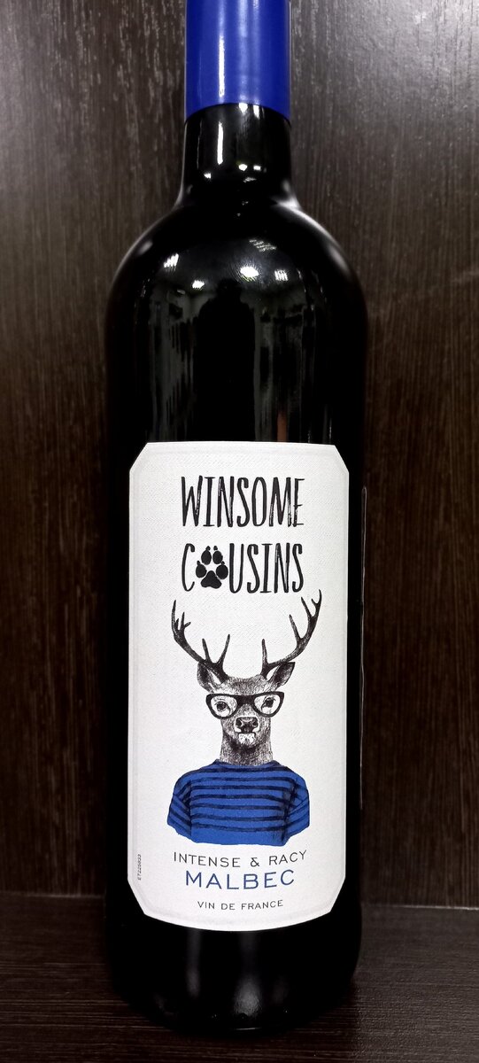 "Winsome Cousins" Malbec — насыщенное и колоритное французское столовое красное сухое вино из винограда сорта Мальбек, который выращивается на виноградниках LaСheteau. Урожай собирается по достижении ягодами оптимальной спелости, очищается от стеблей, измельчается и ферментируется от 6 до 12 дней при температуре не выше 32 °C. В результате получается молодое вино с ярким ароматом и структурированным вкусом, которое отлично сочетается с ароматными сырами и мясом на гриле. У вина яркий рубиновый цвет. Выразительный аромат вина изобилует многогранными оттенками красных фруктов. Вкус вина насыщенный, гармоничный, хорошо структурированный и сбалансированный, с интенсивными фруктово-ягодными тонами, твердыми, но элегантными танинами, свежей кислотностью и долгим, стойким, пряным послевкусием.