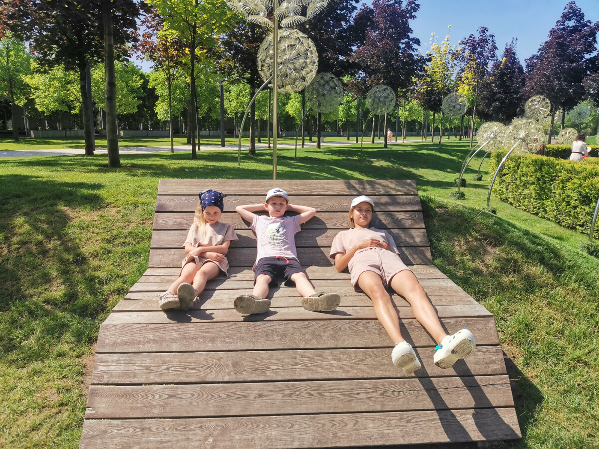 Дети там катались колбасками по траве и резвились во всех фонтанах. Это было так классно.
