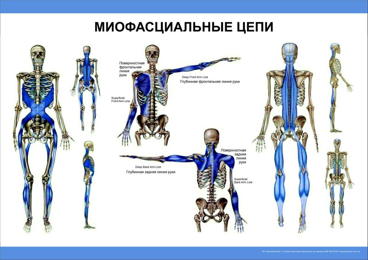 Причиной боли и скованности в теле может быть перенапряжение мышц и окружающих их фасций. Фасции пронизывают все тело. Они мягкий скелет нашего тела. Мы в них упакованы, как в комбинезон, от пяток до макушки. Если фасция узкая, она зажимает структуру, которая упакована в эту фасцию (мышцы, нервы, сосуды, внутренние органы). В движении тела участвует большое количество мышц. Они связаны в цепи или поезда. Для осуществления движения надо чтобы вся цепь сработала. Если в этой цепи одно из звеньев воспалено, например, мышцы спины, на них можно воздействовать через другие звенья этой цепи. По этому принципу работает миофасциальный релиз. Работая с задней поверхностью бедер и стоп, вы сможете ослабить напряжение в мышцах спины. Это не единственная цепь в теле. Мышцы и фасции образуют цельный “комбинезон”, в который мы упакованы с головы до ног. От размера этого комбинезона будет зависеть как располагаются мышцы и кости в нашем организме. Если комбинезон эластичный, то кости вну
