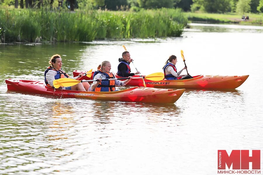 Набережная реки Свислочь в центре столицы всегда была излюбленным местом прогулок горожан и туристов, особенно в теплое время года. Кажется, что уже и не осталось неизведанных уголков, где можно было бы отдохнуть от рутины. И все же есть способ по-новому посмотреть на привычные места – со стороны воды. Вечером 11 июля неподалеку от парка «Dreamland» состоялся вечерний сплав на байдарках, где так же побывала корреспондент агентства «Минск-Новости». Как объясняет нам организатор мероприятия, руководитель компании #Prosplav Дмитрий Романкевич, компаний, которые проводят сплавы на байдарках очень много, однако форматы существенно отличаются. Так, уникальность вечерних сплавов по Свислочи – в их атмосферности. В самом деле, когда солнце заходит за горизонт, начинается настоящее волшебство! Глядя на огненные отражения лучей в воде и вслушиваясь в звуки природы, любой человек может почувствовать себя частью большого и неизведанного мира. Можно полностью отстраниться от повседневной суеты и на