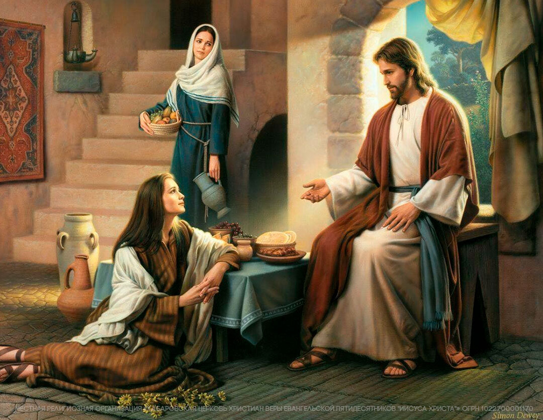 Верующие люди в своей повседневной жизни имеют так же много забот, как и неверующие. Им так же нужно зарабатывать, чтобы купить все самое необходимое. Они так же готовят еду и устраивают прием гостей. Их так же волнует качество того, что они делают и они стараются сделать всё самым наилучшим образом. И на всё это им так же приходится уделять определенное время. Но есть время, отделенное для Господа. Чтобы услышать Его слова, принять Его наставления, научиться Его мудрости. И очень важно для каждого верующего находить это время в своем расписании, и быть сосредоточенным на общении с Богом, а не блуждать мыслями, стараясь решить многочисленные вопросы. Сам Иисус Христос указал на это, находясь в гостях у Марфы и Марии, сестер Своего друга Лазаря, в Вифании. Евангелие от Луки10:38-42«В продолжение пути их пришел Он в одно селение; здесь женщина, именем Марфа, приняла Его в дом свой; у нее была сестра, именем Мария, которая села у ног Иисуса и слушала слово Его. Марфа же заботилась о больш