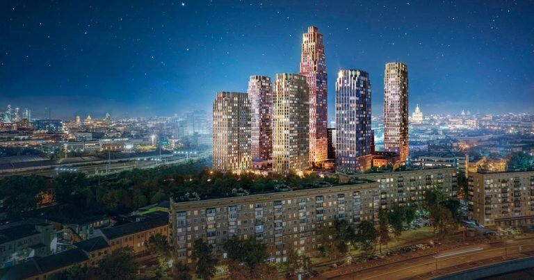 Жилой комплекс собираются строить на месте снесенных зданий бывшей фабрики «Фарбверке», на которой производились красители. До развала СССР здесь располагался Дербеневский химический завод, созданный на базе дореволюционного «Фарбверке», а в 1990-е здания стали сдавать под офисы. Сейчас на месте завода только огороженная стройплощадка — все уже снесли. Весной Москомархитектура одобрила строительство первой очереди жилого комплекса, а теперь согласовала и вторую очередь. Об этом пишет телеграм-канал «Стройки — и точка». Всего проектом предусмотрено шесть небоскребов, по три в каждой очереди. Весь комплекс займет площадь 86 тыс. кв. м, а высота самого большого здания составит 210 метров. Обещают, что дома будут в стиле ар-деко — его очень любят покупатели московской элитной недвижимости, а ЖК позиционируют именно как премиум-класс. В шести зданиях расположится в общей сложности 858 квартир — от 28 до 160 кв. м, с видовыми террасами и пентхаусами. «Планировки — от студий до пятикомнатных