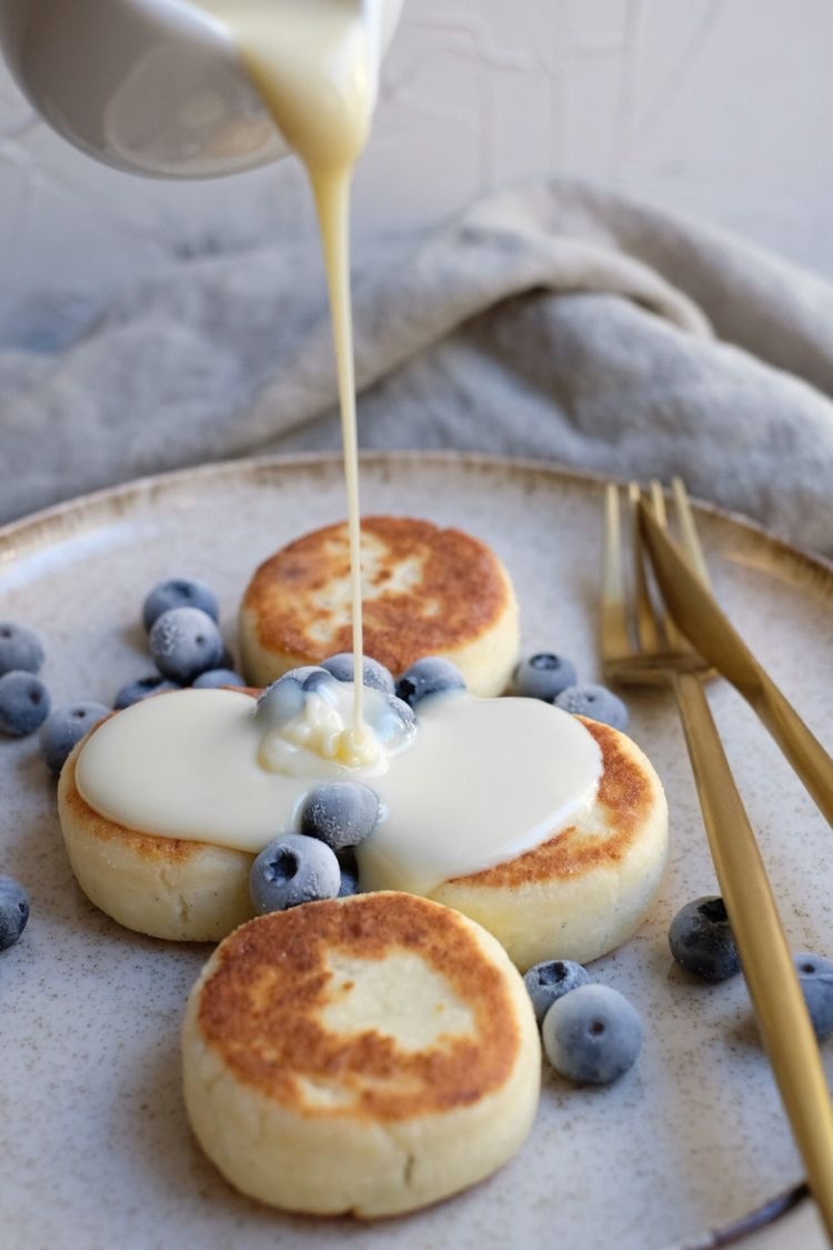 Ингредиенты: • творог 5% 360г • яйцо (только желток) 1шт • сахар по вкусу • мука 40г • ваниль по вкусу Приготовление: 1. Творог растираем с яйцом 2. Добавляем сахар и ваниль 3. Высыпаем муку и перемешиваем 4. Накрываем массу пленкой и в холодильник на 1 час 5. Присыпаем стол мукой и формируем сырники 6. Обжариваем с двух сторон 7. Поливаем любимыми сиропами и добавляем ягоды 8. Сырники готовы! Приятного аппетита)