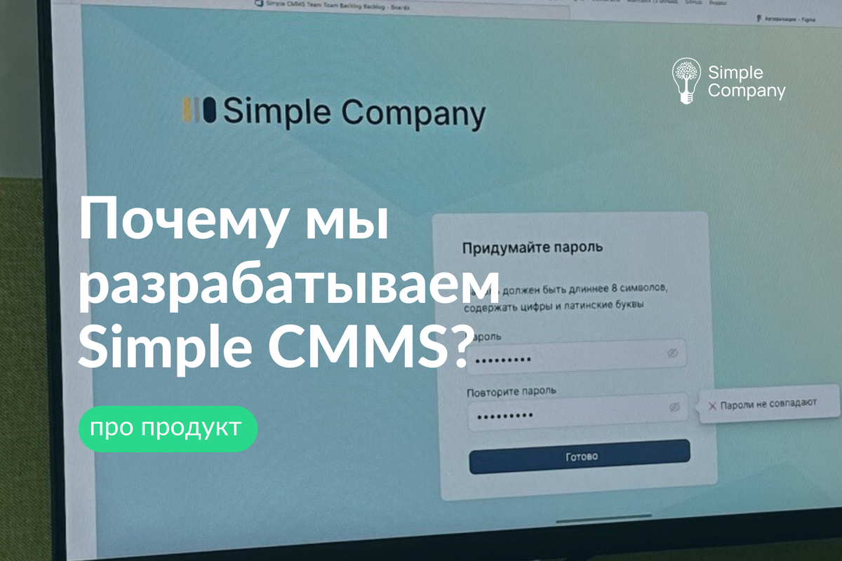 В планах компании в ближайшем будущем выпустить на рынок три продукта Simple: СMMS, RBI и RCM3. Начать разработку мы решили с более простой CMMS-системы, аналоги которой используют практически все крупные предприятия. CMMS — комплексная система управления техническим обслуживанием, позволяющая оперативно получать информацию о состоянии оборудования, планировать, отслеживать и управлять ремонтными работами. Почему именно она? Несмотря на уже имеющиеся решения на рынке, до сих пор остается потребность в простой и гибкой системе, которую можно оперативно внедрить на любом предприятии. Для нас же разработка подобного программного продукта преследует сразу несколько целей.