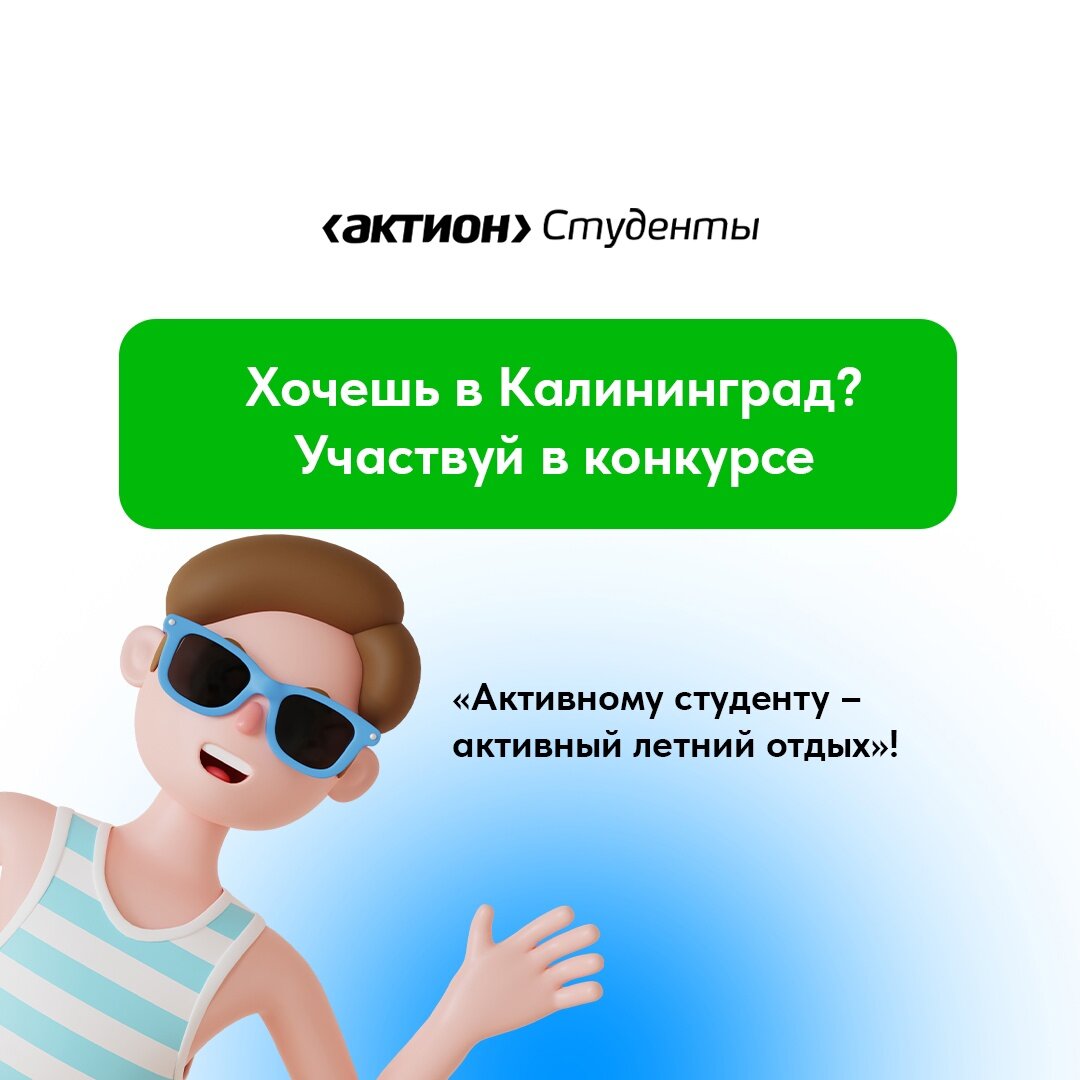 Наши активные, удача на вашей стороне! А это потому, что конкурс «Активному студенту – активный летний отдых» продолжается! Значит, у каждого из вас еще есть шанс потусить за наш счет в Калининграде!