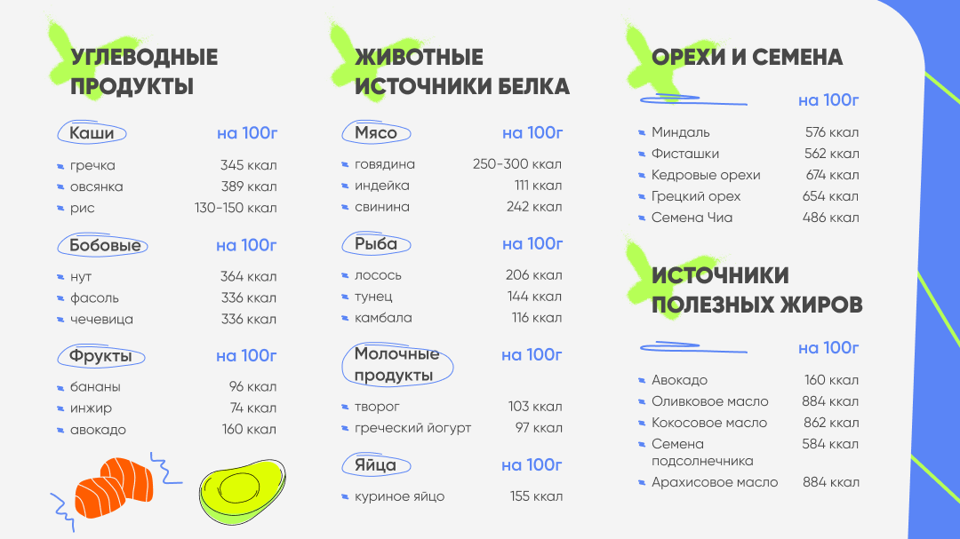 Однако помните, что калорийность продуктов может варьироваться в зависимости от способа приготовления. Важно также учитывать общую потребность в калориях и индивидуальные особенности организма.