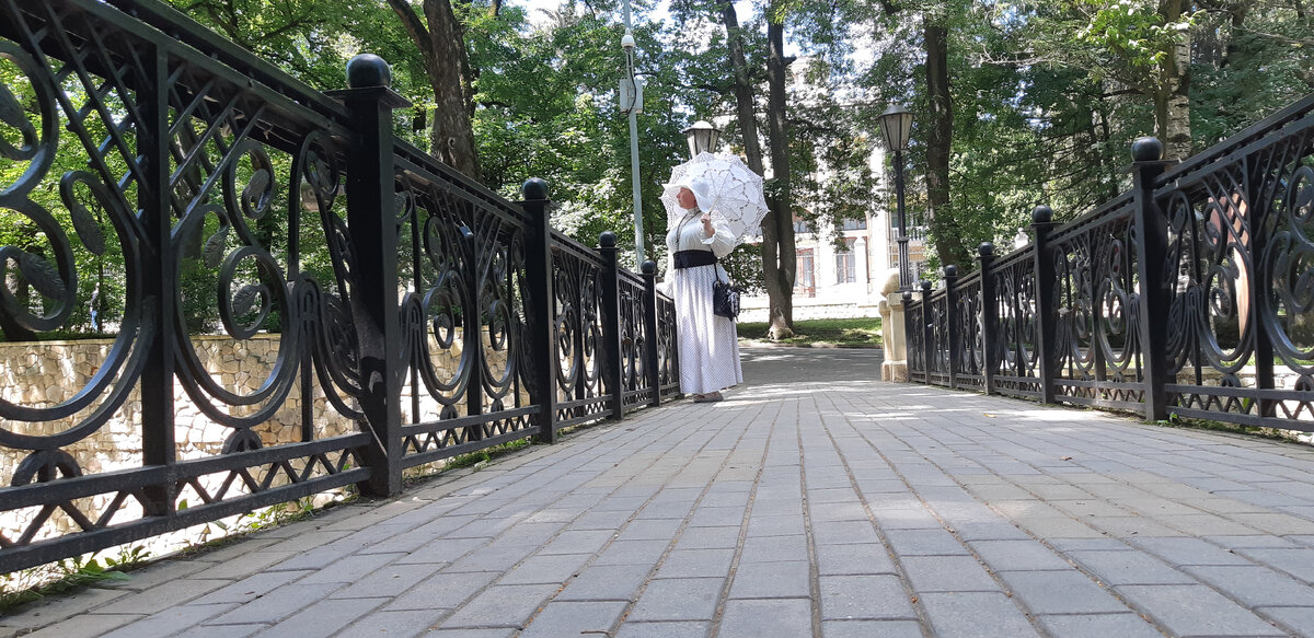 Так как город старинный, исторический, я решила устроить фотосессию в похожем на историческй облике. Фотографии не профессиональные, снимал сын на телефон. Надеюсь, эпоху воссоздать удалось😊. Все фото сделаны в Кисловодском парке