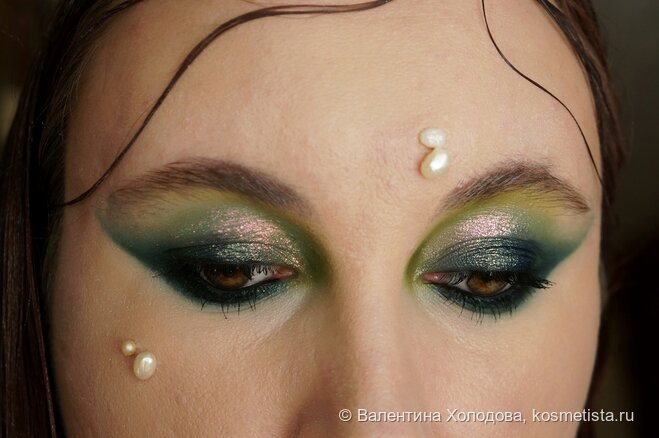 У русалки печальные очи. Николай Гумилёв Использованные продукты для макияжа глаз: карандаш для бровей Lamel Insta Brow Liner (оттенок не помню – надписи на корпусе стёрлись);гель Arren Maximum Styling Gel (вообще для волос, но и брови уложить можно);база под тени By Beauty Bay Eye Base, 2;клей для глиттера Lovely Glitter Glue Base;консилер TF Cosmetics Master Skin, 01;карандаши Lamel Kajal 401 чёрный и Maybelline Tattoo Liner изумрудный 932;палетка теней By Beauty Bay Wilderness;пигменты Sigil Inspired Tammy Tanuka Спрут и Видящая потенциал кристаллов;тушь Art-visage Chicago чёрная. Для