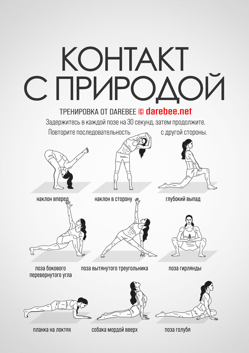 Новый релиз — Контакт с природой — йога-тренировка для идеального начала дня от Дареби. https://darebee.net/wakeup-and-connect-workout.html ЦЕЛЬ: все тело ТИП: йога СЛОЖНОСТЬ: 3 — подходит для начинающих