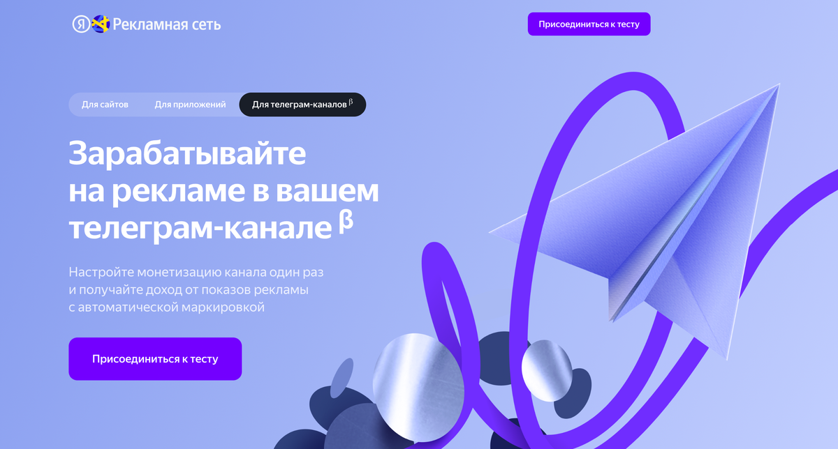 Владельцы каналов в Telegram теперь могут подключить их к рекламной сети «Яндекса» Яндекс запустил Beta тестирование нового инструмента в рамках Рекламной Сети Яндекса (РСЯ). Владельцы каналов в Telegram, в том числе и небольших — от двух тысяч подписчиков, теперь могут подключить их к Рекламной сети Яндекса Новый рекламный инструмент позволит монетизировать канал, даже если он имеет узкую тематику или только начинает набирать популярность. Рекламные посты публикует разработанный Яндексом бот. Владельцу канала нужно предоставить ему право публикации сообщений — это единственное разрешение, которое требуется боту. За подбор рекламы отвечают нейросети Яндекс Директа. Они учитывают тематику канала и находят объявления, которые наиболее ей соответствуют. Владелец канала сам решает, как часто показывать рекламу и в какое время. Объявление выглядит как обычный пост: с картинкой или видео и ссылкой — например, на лендинг рекламируемого продукта. Пост обязательно включает пометку «Реклама» и с
