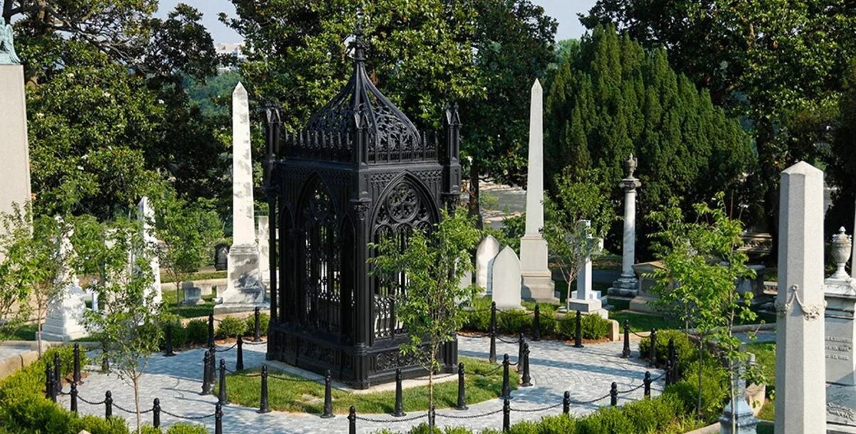 Кладбище Hollywood Forever, Лос-Анджелес Основанно кладбище в 1899 году. Hollywood Forever, было свидетелем рождения американской кинопромышленности. Здесь погребены легендарные владельцы кинокомпаний, писатели, режиссеры, сценаристы и актеры. Есть даже гангстеры. Hollywood Forever - последнее пристанище американских знаменитостей. Кладбище действующее, т.е. захоронения ещё проводятся. На кладбище похоронен такие люди, как: 1) Джонни Рамон Джон Уильям Каммингс или же Джонни Рамон, он был американским музыкантом, гитаристом и одним из основателей Ramones, группы, которая стала пионером панк-движения. В 2009 году Реймон появился в списке "10 величайших электрогитаристов" по версии Time. Его группа была включена в Зал славы рок-н-ролла в 2002 году. 15 сентября 2004 года Джонни Рамон скончался в своем доме в Лос-Анджелесе в возрасте 55 лет, за 23 дня до своего 56-летия. 2) Эдвард Хьюард Банкер Самый известный заключенный страны. Американский автор криминальной прозы, сценарист, осужд