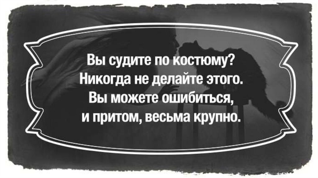 Но «чёрное» искусно скрывает свою истинную суть, надевая «белые одежды». И здесь важно «не вестись на костюм» и увидеть то, что есть на самом деле, за красивыми «одеждами» - не всё то золото, что блестит. «Никогда не судите по костюму – вы можете ошибиться, и, притом, весьма крупно» Михаил Булгаков