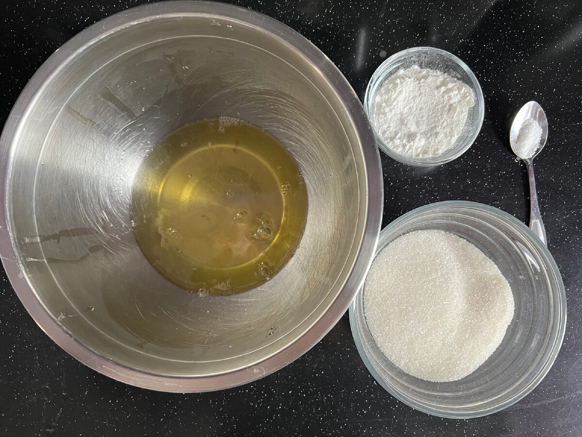 - Первым делом необходимо отмерить все ингредиенты и подготовить белки, нужно отделить белки от желтков так, что б вес белков был 180 - 190 гр. Белки нужно аккуратно отделить так, что б в них не попал желток.