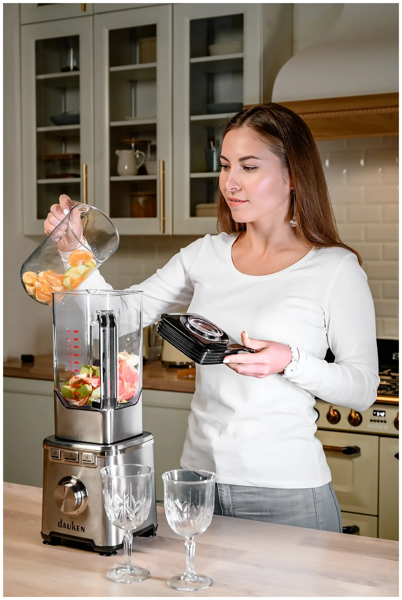 - Нарежьте фрукты на кусочки и поместите их в блендер.